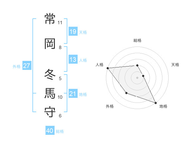 常岡 冬馬守さんの天格は19画の1点!
