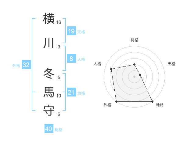 横川 冬馬守さんの外格は32画の5点!