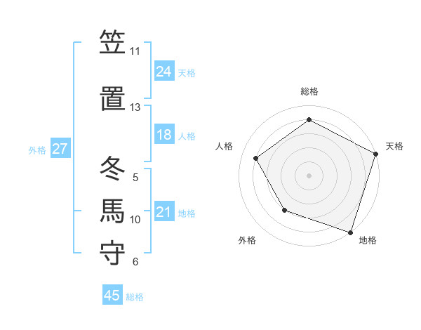 笠置 冬馬守さんを姓名の画数から五運を鑑定