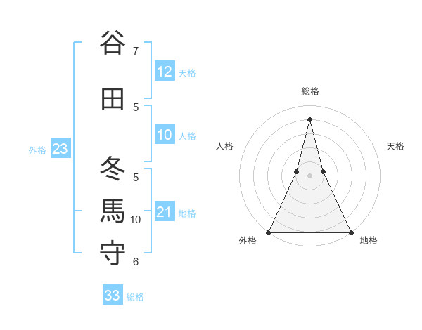 谷田 冬馬守さんを姓名の画数から五運を鑑定