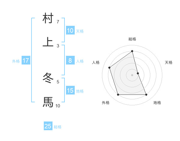 村上 冬馬さんの総格は25画の4点!