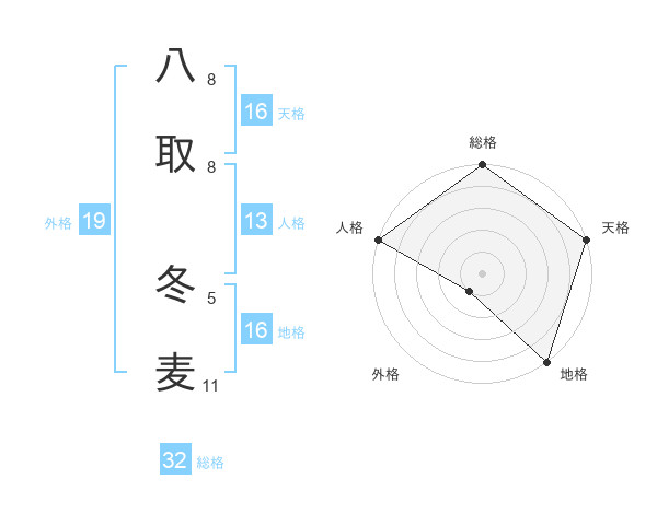 八取 冬麦さんの天格は16画の5点!
