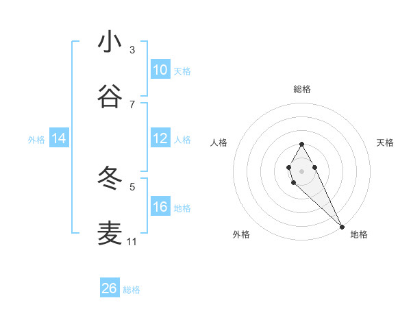 小谷 冬麦さんを姓名の画数から五運を鑑定