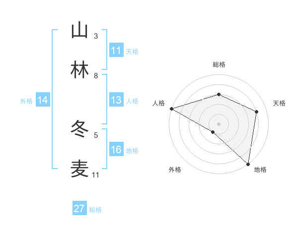 山林 冬麦さんを姓名の画数から五運を鑑定