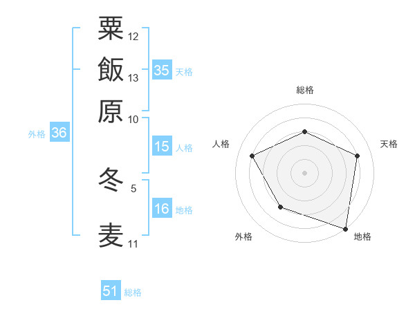 粟飯原 冬麦さんの総格は51画の3点!