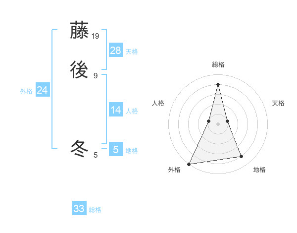 藤後 冬さんの総格は33画の4点!