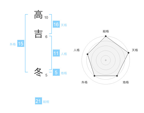 高吉 冬さんの総格は21画の5点!