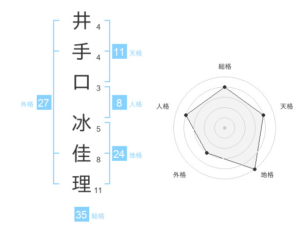井手口 冰佳理さんの総格は35画の4点!