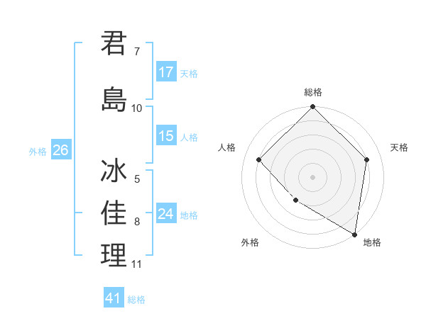 君島 冰佳理さんを姓名の画数から五運を鑑定