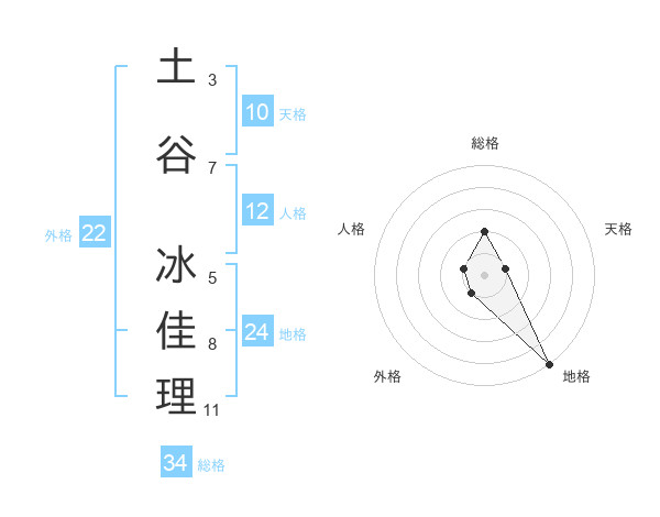 土谷 冰佳理さんを姓名の画数から五運を鑑定