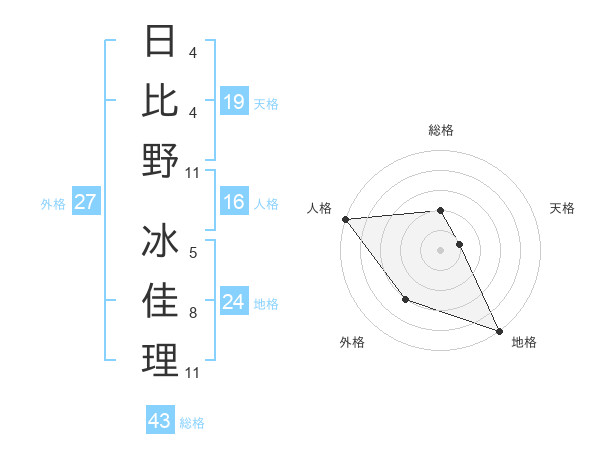日比野 冰佳理さんを姓名の画数から五運を鑑定