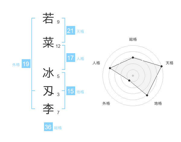 若菜 冰刄李さんを姓名の画数から五運を鑑定