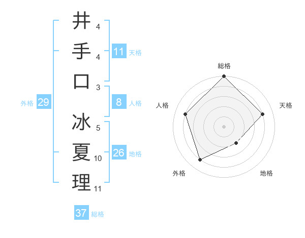 井手口 冰夏理さんを姓名の画数から五運を鑑定