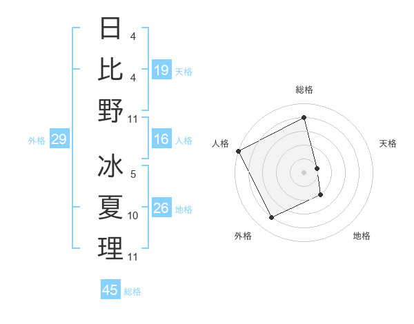日比野 冰夏理さんを姓名の画数から五運を鑑定