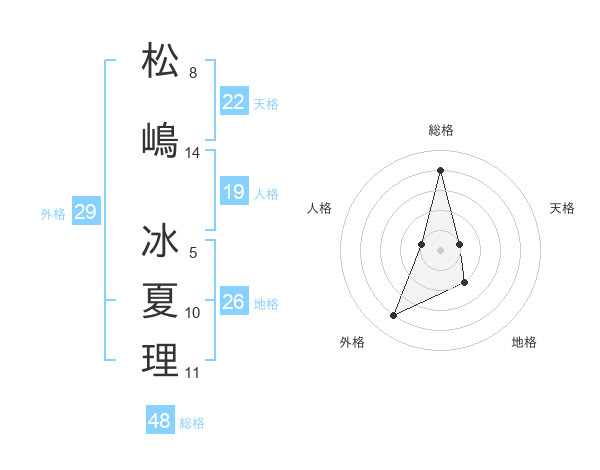 松嶋 冰夏理さんを姓名の画数から五運を鑑定