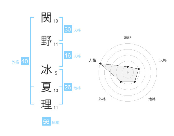 関野 冰夏理さんを姓名の画数から五運を鑑定