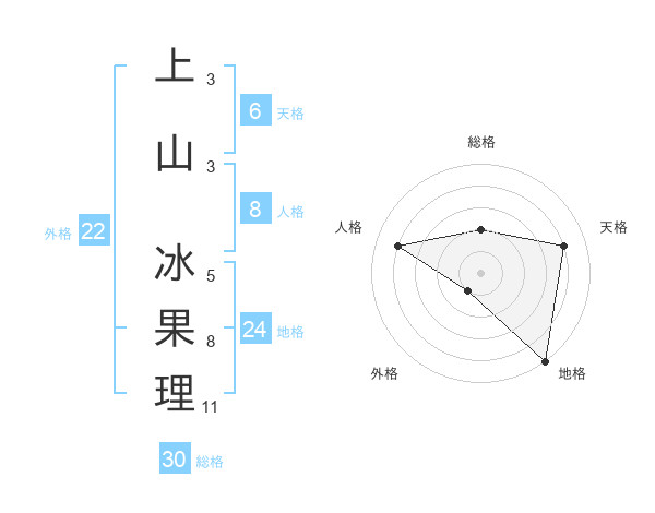 上山 冰果理さんを姓名の画数から五運を鑑定
