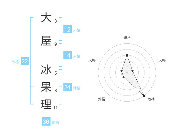 大屋 冰果理さんを姓名の画数から五運を鑑定