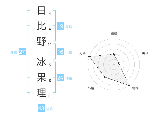 日比野 冰果理さんの総格は43画の2点!