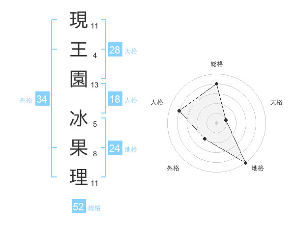 現王園 冰果理さんの総格は52画の4点