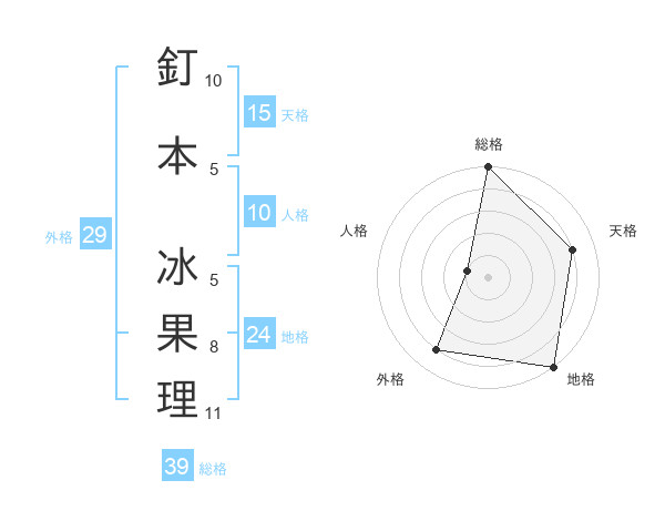 釘本 冰果理さんを姓名の画数から五運を鑑定