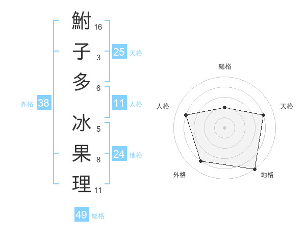 鮒子多 冰果理さんを姓名の画数から五運を鑑定