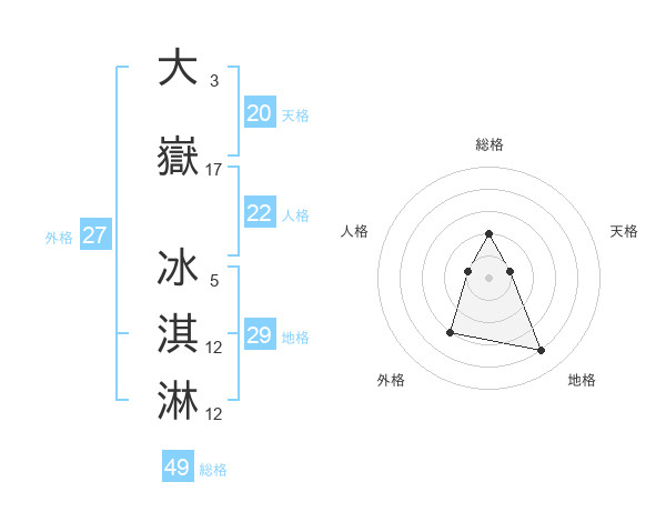 大嶽 冰淇淋さんの総格は49画の2点!