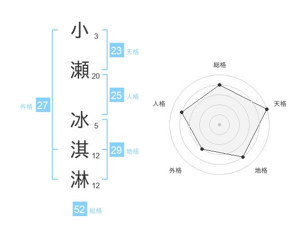 小瀬 冰淇淋さんを姓名の画数から五運を鑑定