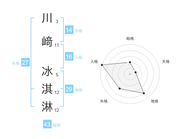 川﨑 冰淇淋さんの総格は43画の2点!