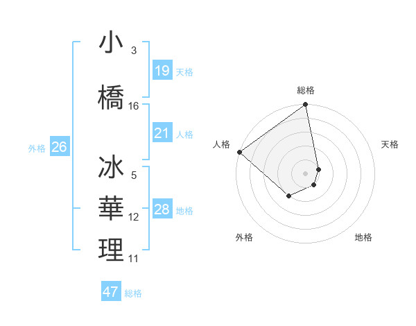 小橋 冰華理さんの総格は47画の5点!
