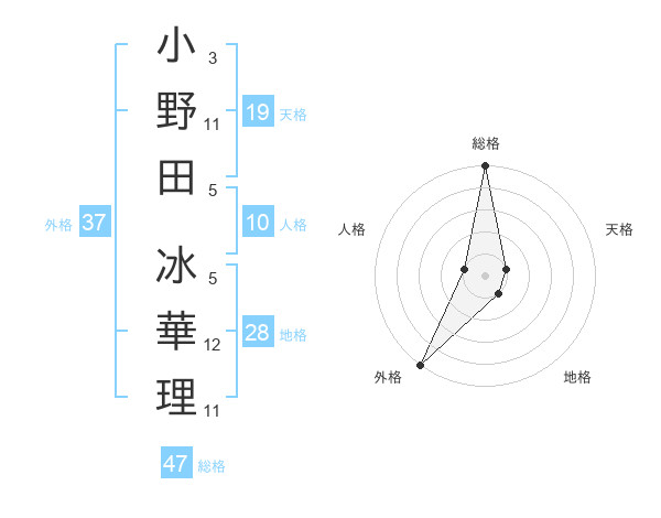 小野田 冰華理さんの外格は37画の5点!