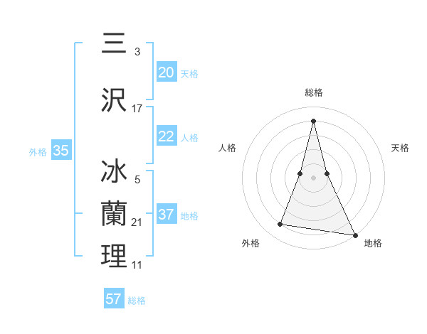 三沢 冰蘭理さんを姓名の画数から五運を鑑定