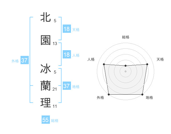 北園 冰蘭理さんを姓名の画数から五運を鑑定