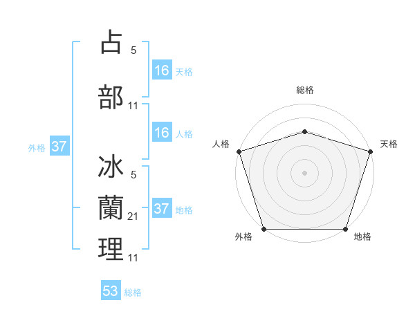 占部 冰蘭理さんの総格は53画の3点!