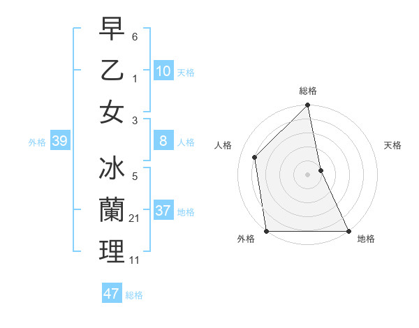 早乙女 冰蘭理さんの総格は47画の5点!