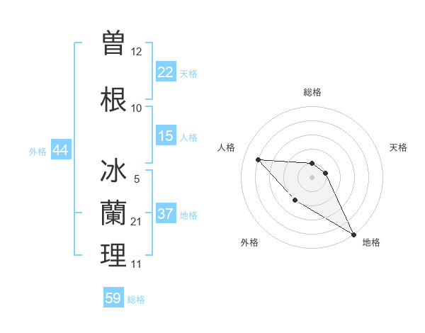 曽根 冰蘭理さんを姓名の画数から五運を鑑定