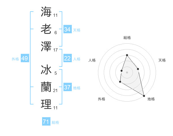 海老澤 冰蘭理さんを姓名の画数から五運を鑑定