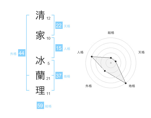 清家 冰蘭理さんを姓名の画数から五運を鑑定