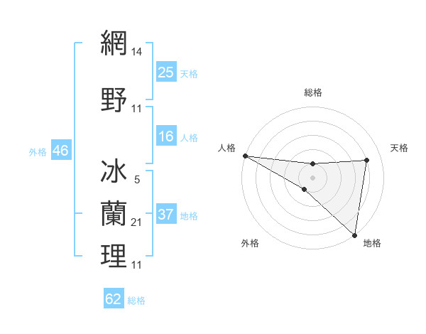 網野 冰蘭理さんを姓名の画数から五運を鑑定