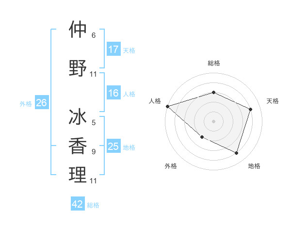 仲野 冰香理さんを姓名の画数から五運を鑑定