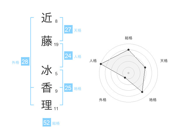 近藤 冰香理さんを姓名の画数から五運を鑑定