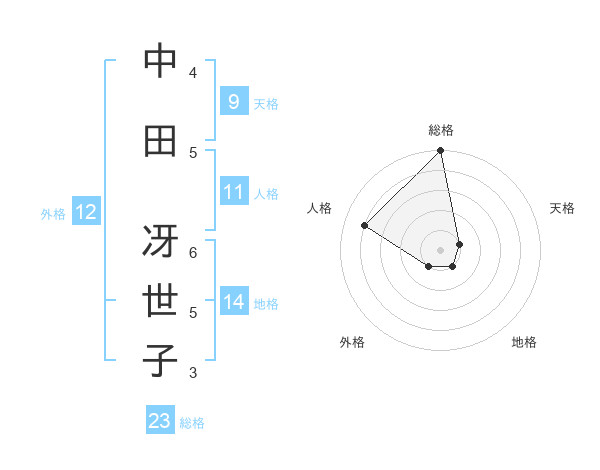 中田 冴世子さんを姓名の画数から五運を鑑定