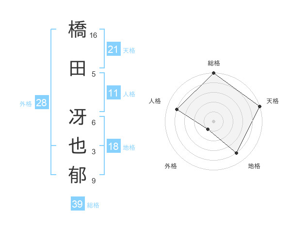 橋田 冴也郁さんの天格は21画の5点!