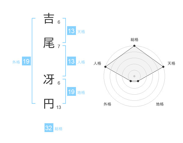 吉尾 冴円さんを姓名の画数から五運を鑑定