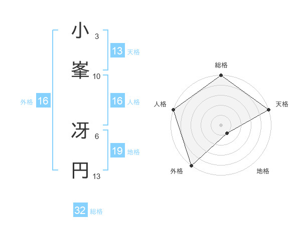 小峯 冴円さんの総格は32画の5点!