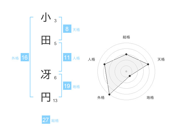 小田 冴円さんを姓名の画数から五運を鑑定