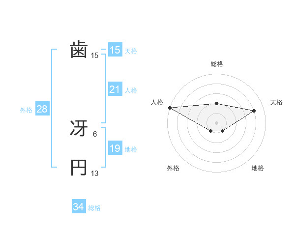 歯 冴円さんの外格は28画の1点!