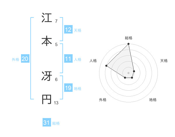 江本 冴円さんの総格は31画の5点!