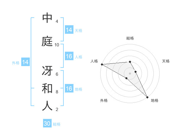 中庭 冴和人さんの総格は30画の2点!