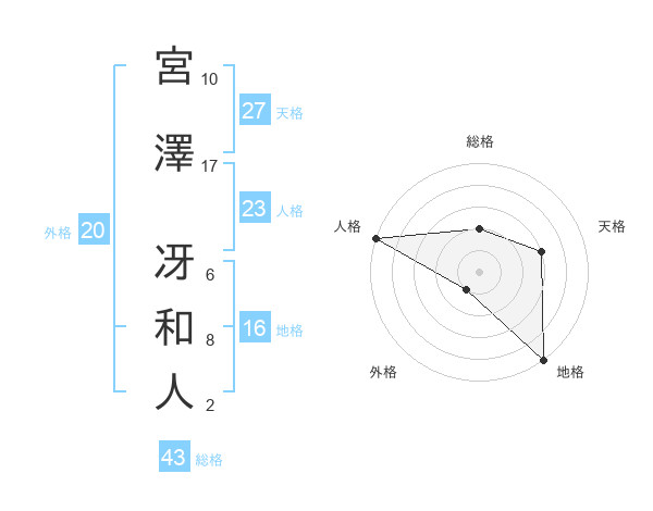 宮澤 冴和人さんの総格は43画の2点!